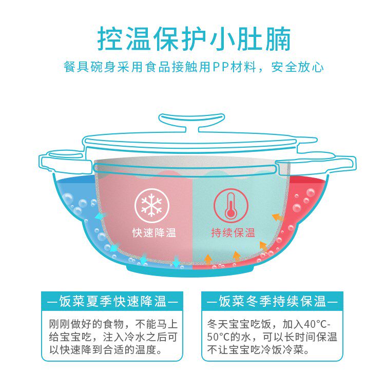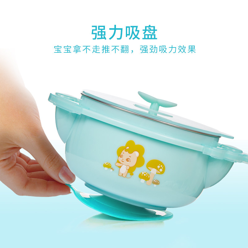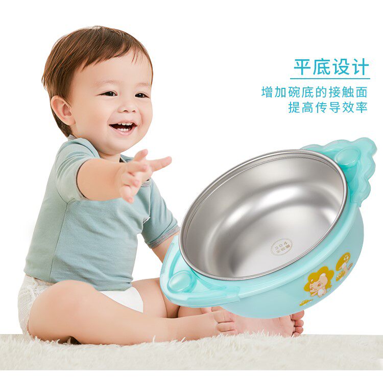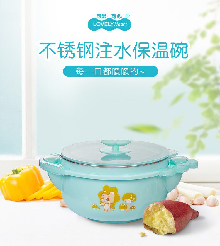 New lovely and heart stainless steel water injection insulation bowl double-layer inner container removable PP outer insulation and anti-scalding