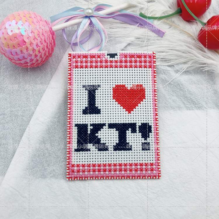 (Line Embroidery) Mic Cross embroidered financial cutting sleeve bus card bag with imprinted cloth material bag KD004KT cat