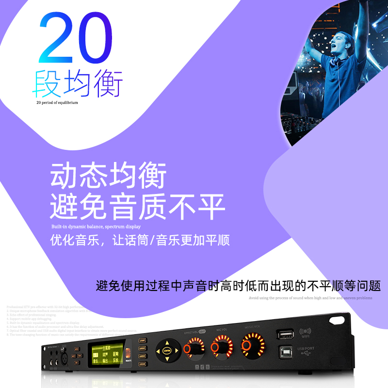 Glen ralston Digital KTV pre-stage effect with anti-howling Professional stage performance Outdoor performance Home singing conference Universal pre-mixer Audio processor