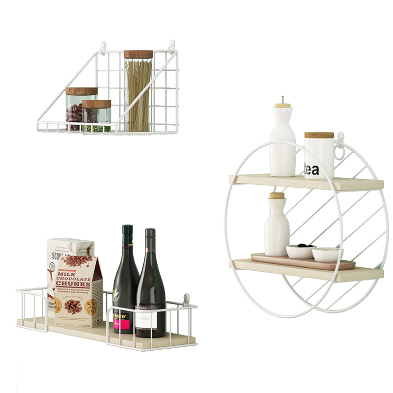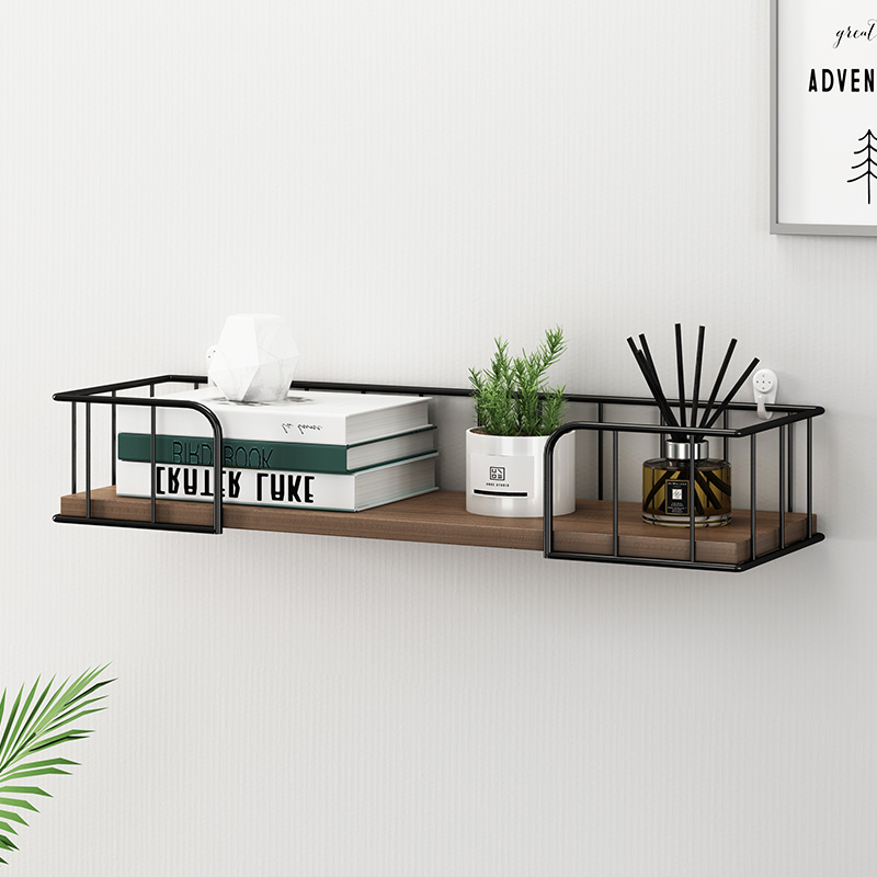 Wall shelf Punch-free bedroom TV wall Wrought iron shelf Wall hanging living room decoration creative partition board