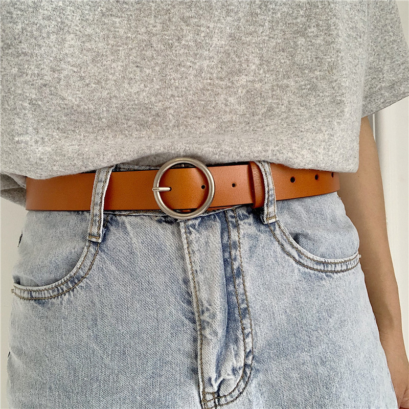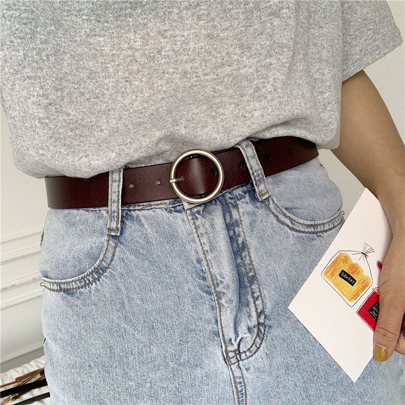 Cowhide Soft Leather Belt Chic Belt Women's Genuine Leather Simple Versatile Black with Jeans Korean Men