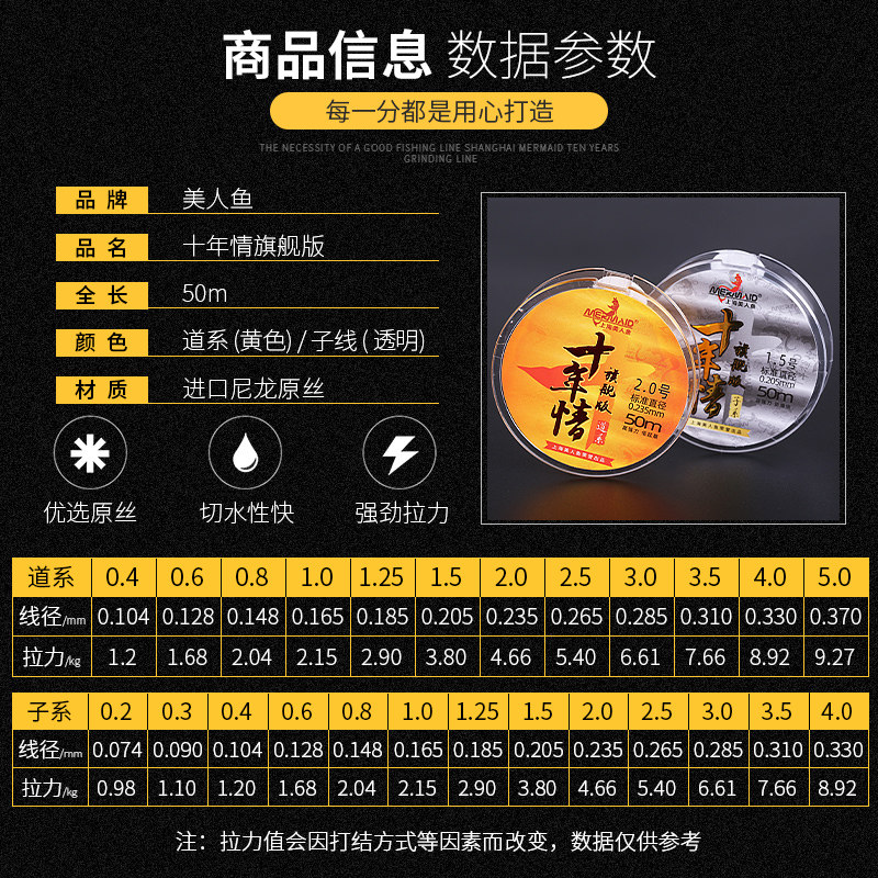 Mermaid flagship store official website fish line main line sub-line ten years of love flagship version 50 meters super strong pull