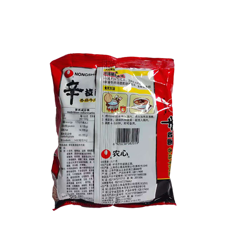 Nongshim Xin Ramen Shiitake Mushroom Beef Instant noodles Instant noodles Boiled noodles Bag noodles Instant soup noodles 120g
