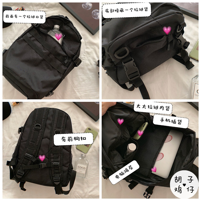 Day Ensemble Original Juku Dark Black Functioning Frock Wind Double Shoulder Bag Korea Ins Street Retro Tide Hitch Male And Female Schoolbags