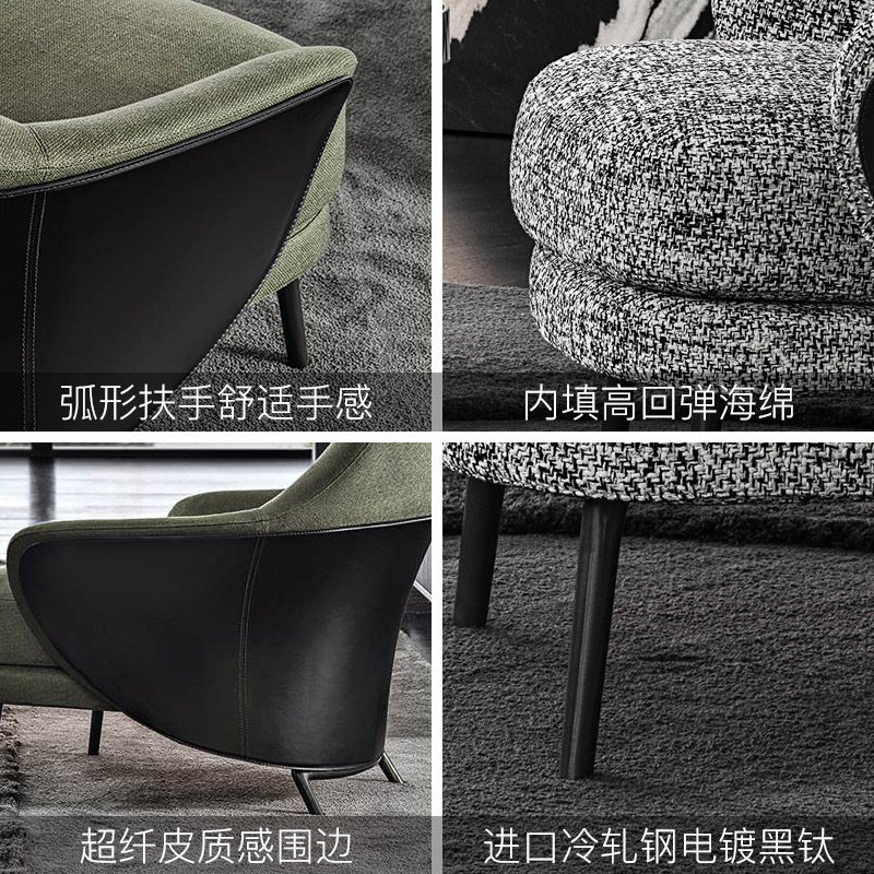 Hong Kong Style Single chair foot pedal Hong Kong Style Light green cotton linen black ultra slim leather Hong Kong S