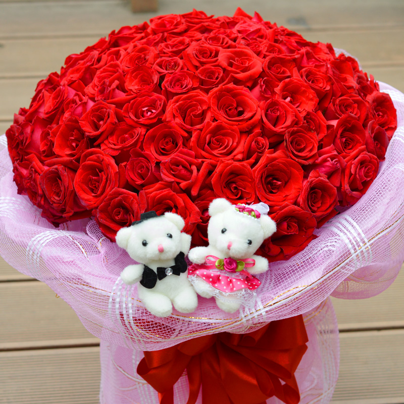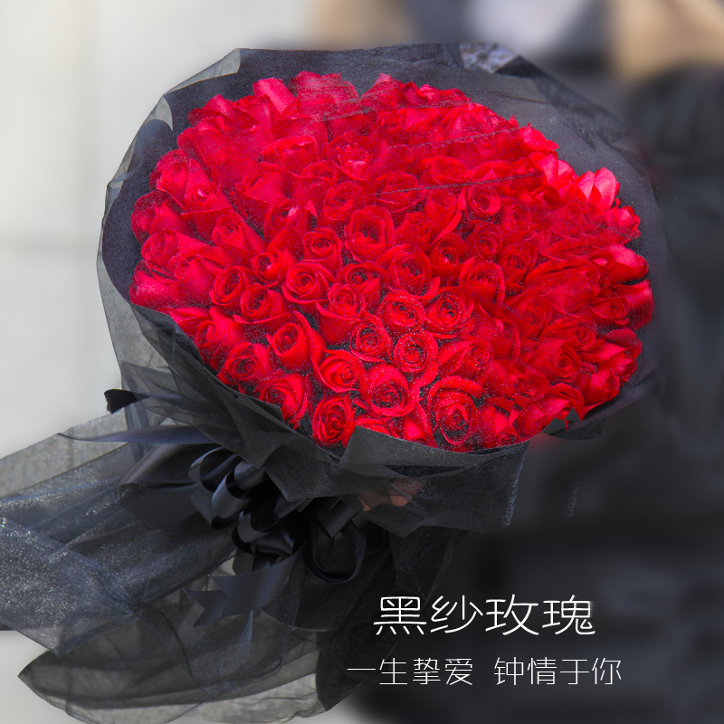 Wine red burst 99 red roses heart-shaped package 99 red roses black yarn package new 99 red roses 99 red roses 2 bear powder yarn packaging 99 red roses purple yarn net packaging 33 powder