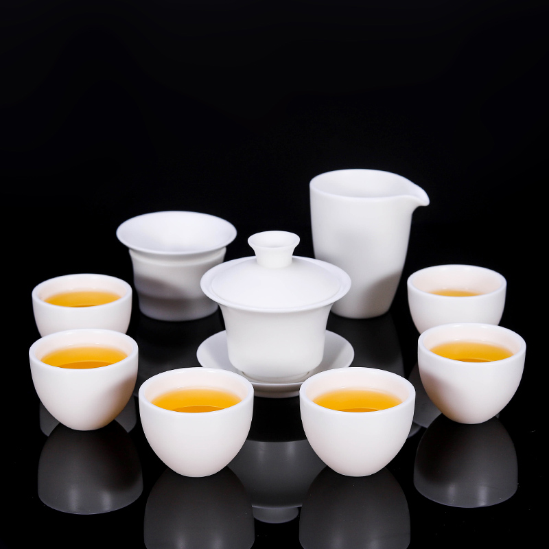 Lismith Dehua white porcelain handmade sheep fat jade kung fu tea set set of household ceramic teapot cover bowl teacase gift box