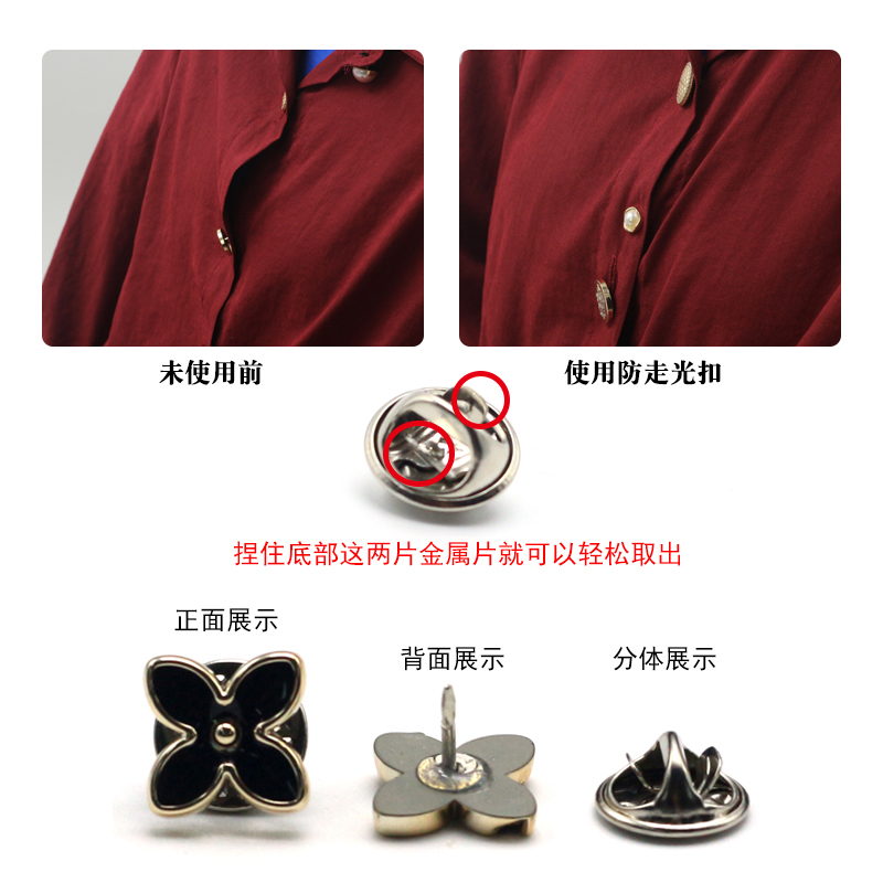 Slit-free button for anti-walking light dark and dark blue light High-end Invisible Buckle 100 Hitch Woman Shirt Cardiovert neckline Chest Needle Buttoned decoration