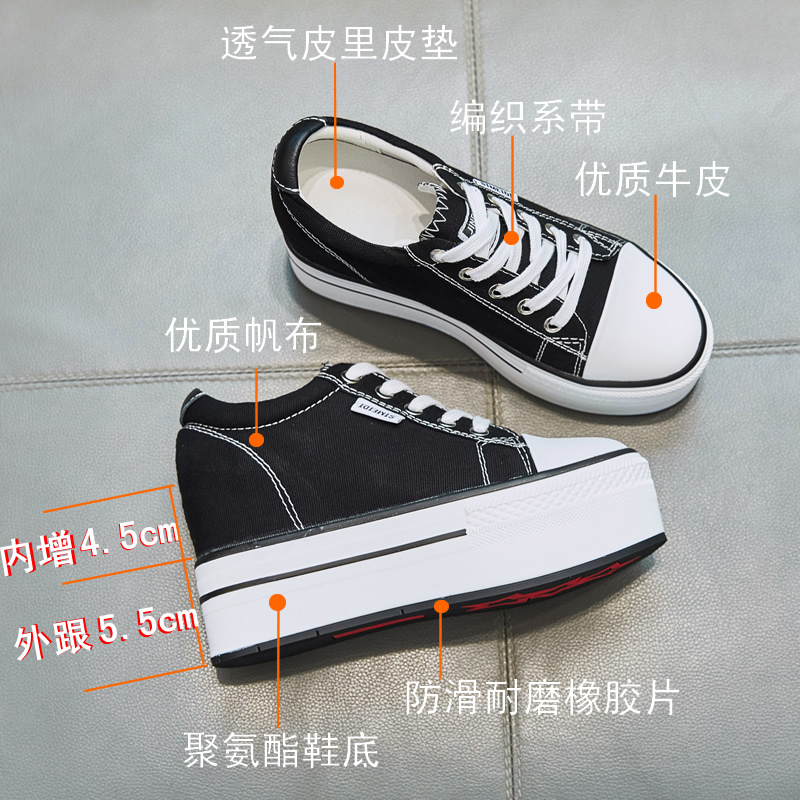 Heightening shoe ultra high heel inner heightening 10cm muffin shoes Women's thick bottom 2022 spring slopes heel 100 Lap Canvas Casual Shoes