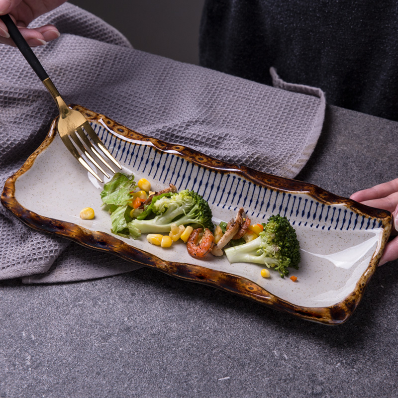 Rectangular Strip Disc Creative Ceramic Dessert Snack Tray Day Style Sushi Sashimi Pan Dining Room Commercial