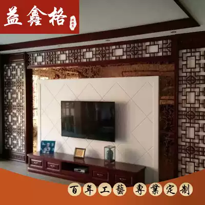 New Chinese style modern solid wood grid partition TV background wall grille screen doors and windows Chinese style antique carving porch