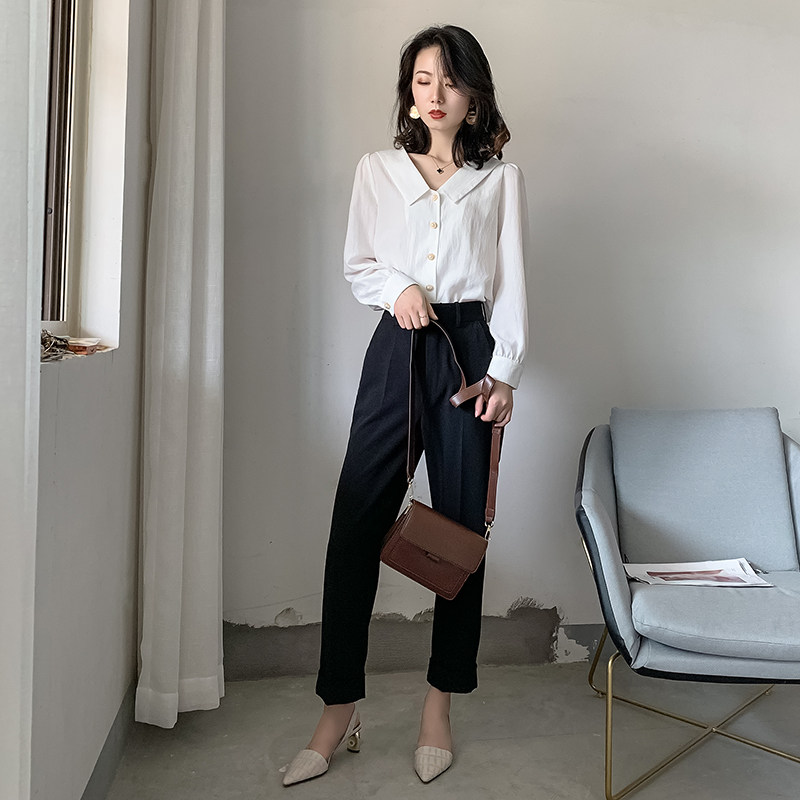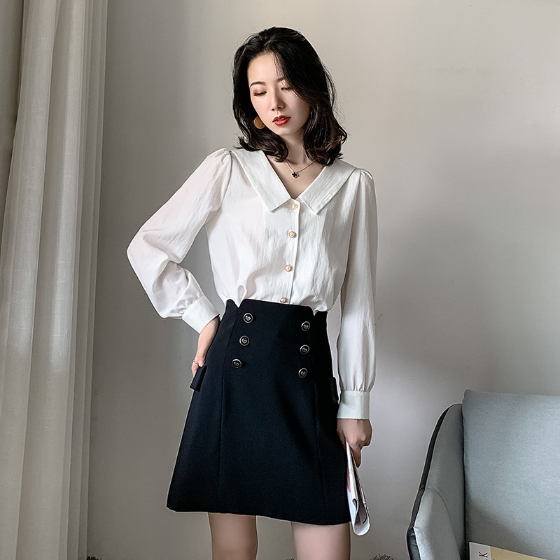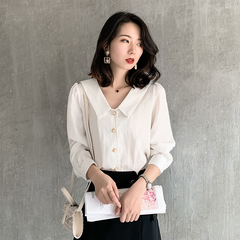 2022 High-end White Shirt Woman Design Sensation Small Crowned Long-sleeved Fashion Retro Snow Spinning Professional Temperament Shirt