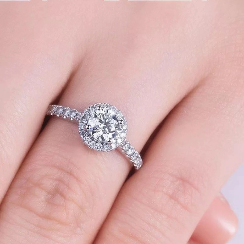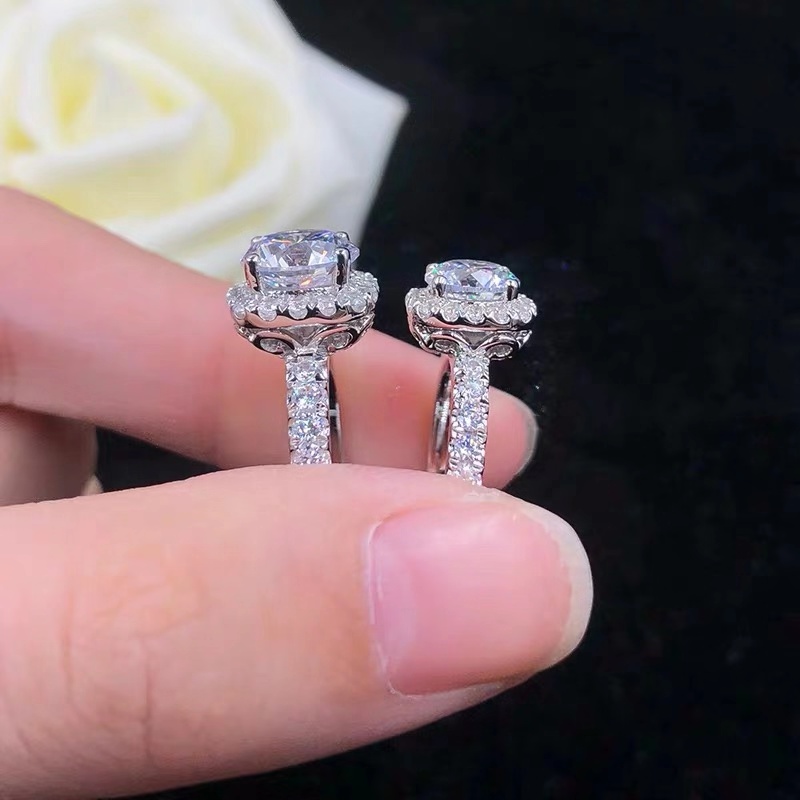 24K platinum inlaid imported moissanite four-claw bezel group ring cake surrounded by diamond group diamond ring for girlfriend