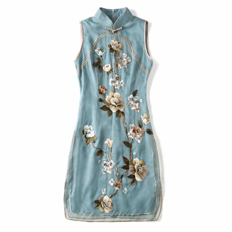 Cheongsam Chinese style fashion women's clothing young girls daily retro embroidery flower sleeveless improved dress summer