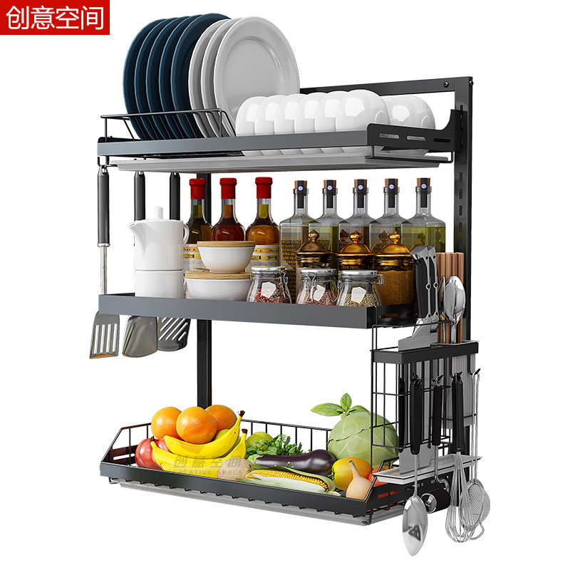 (black two-storey) Dish Rack Mesh Basket (black two-story) Dish Rack Flat Frame (black two-storey) Dish Rack Mesh Basket Knife Chopstick Holder (black two-story) Dish Shelf Flat rack
