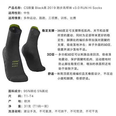 COMPRESSPORT2019 Black Marathon Running Leisure Sports Cross-Slip Sweating 3D Bean Socks V3 0