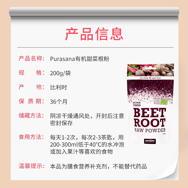 Belgian Purasana Beetroot Root Powder Supplements Iron Element Children Adolescent Pregnant Women Adults Meta-gas Tired Color