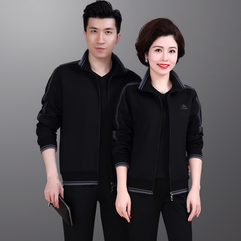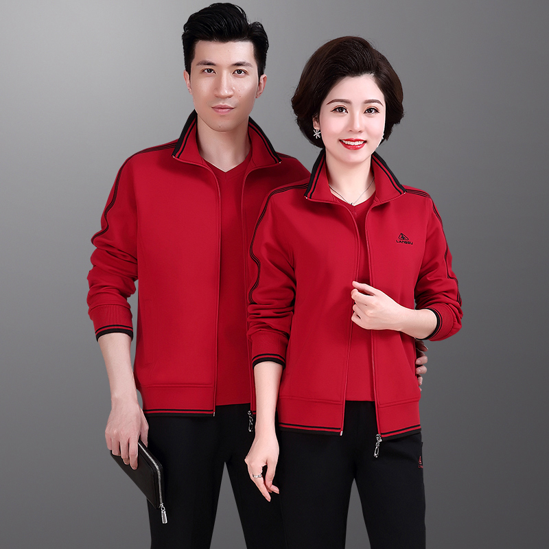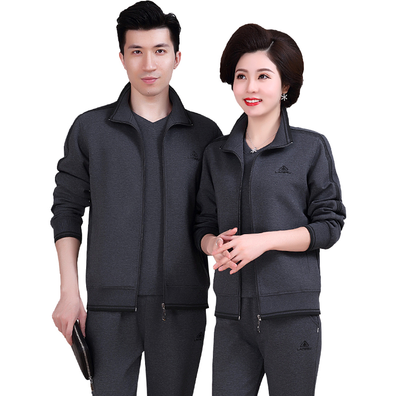 Middle-aged couple sports suit men's spring and autumn and winter three-piece sportswear men's mom and Dad sports clothing group