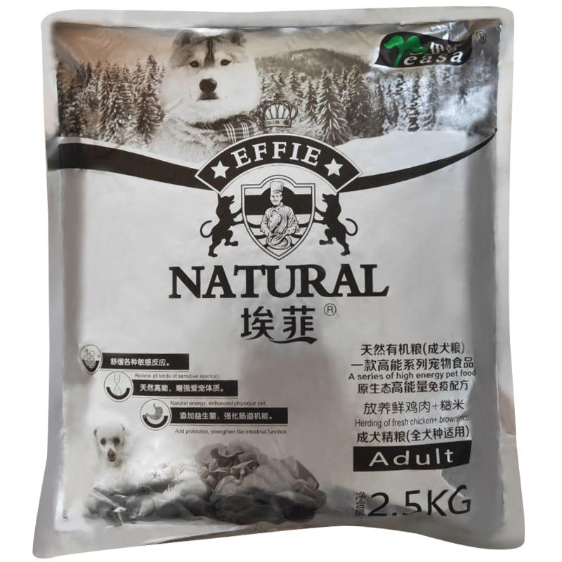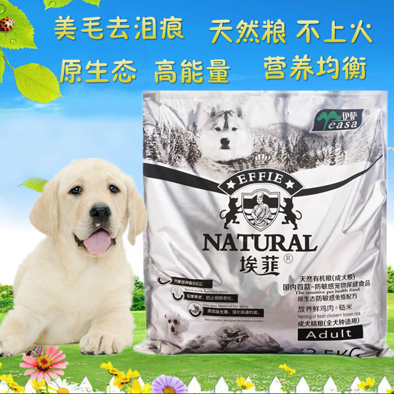 Effie dog food 2 5kg natural high calcium adult dog food 5 catties small and medium-sized dog teddy golden retriever nutrition chicken-flavored dog food