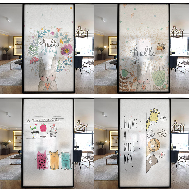 Cartoon Balroom Frosted Film Transparent Bedroom WindowsKitchen Living Room Frosted Sticker WindowsFlowers