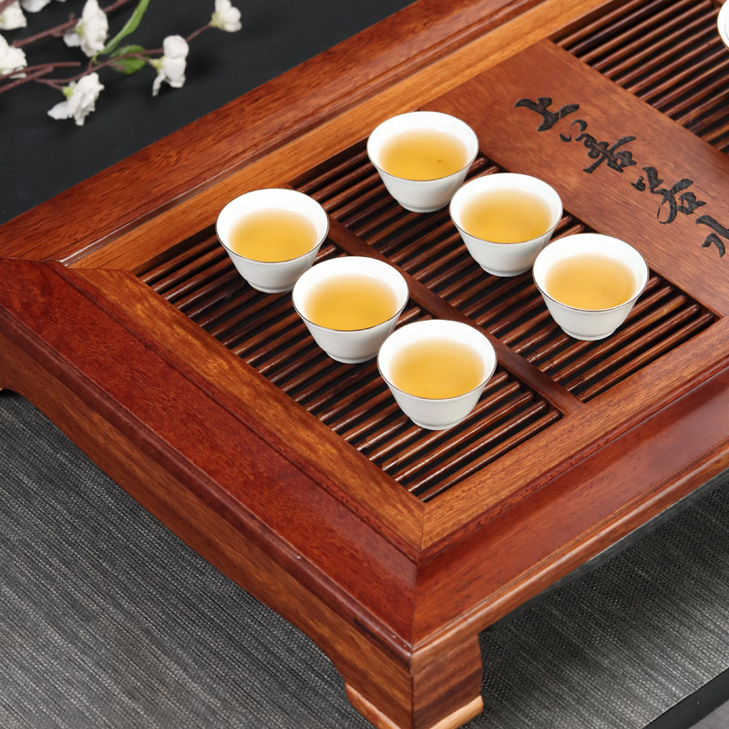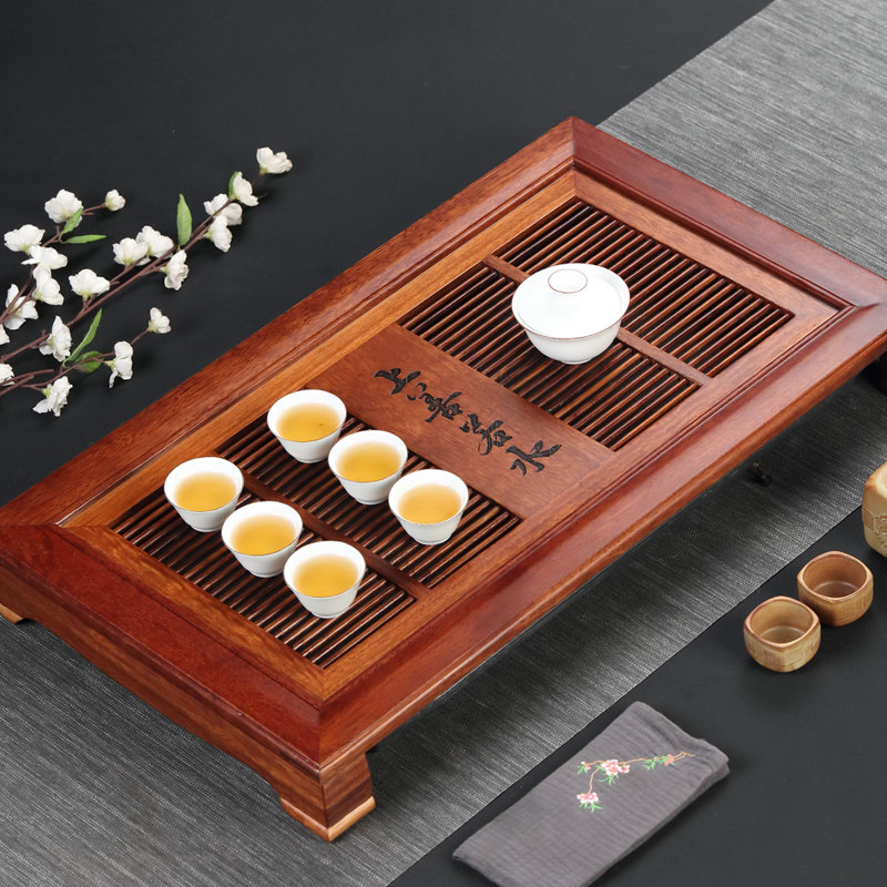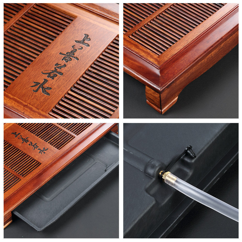Flower wood solid wood tea plate household water storage kung fu tea table large red wood drawer tea tray