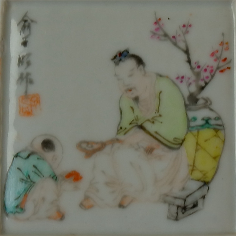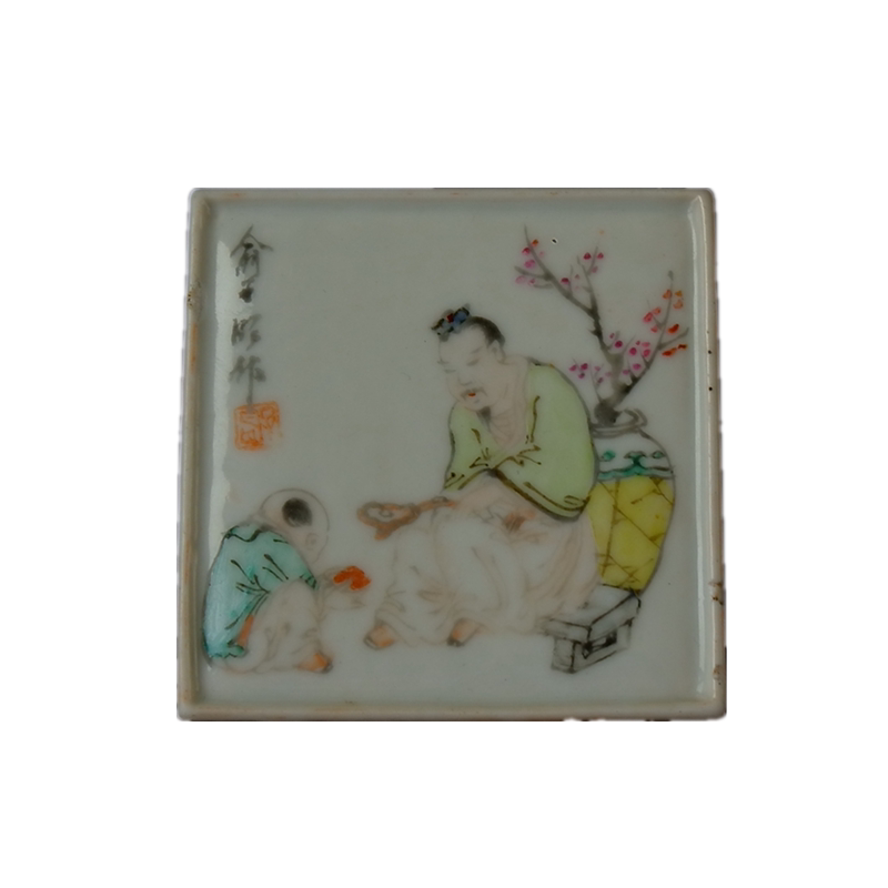 Spring = Shore of the shore Qing Dynasty light magenta painter Yu Ziming figure high sergean porcelain plate painting literati porcelain
