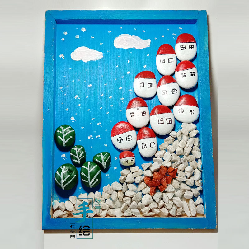 Wood Photo Frame Stone Parquet Finished Fine Art Hand Creative Pure Hand Painted Cobblestone Nursery to customize the pendulum piece