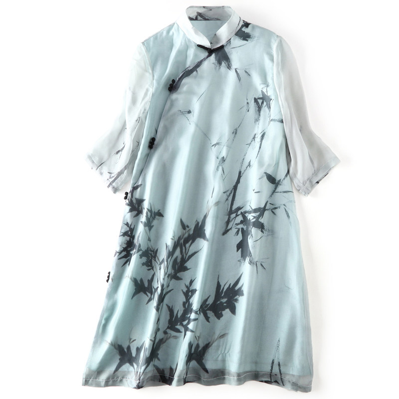 New qipao young girl's new real silk mulberry silk Chinese wind fashion retro big size to improve the foreign dress