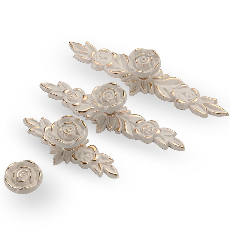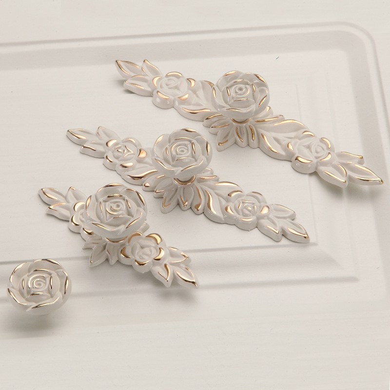 Eurostyle ivory white rose wardrobe Home innate gold and silver lined with sheet single-hole handle overall cupboard handle