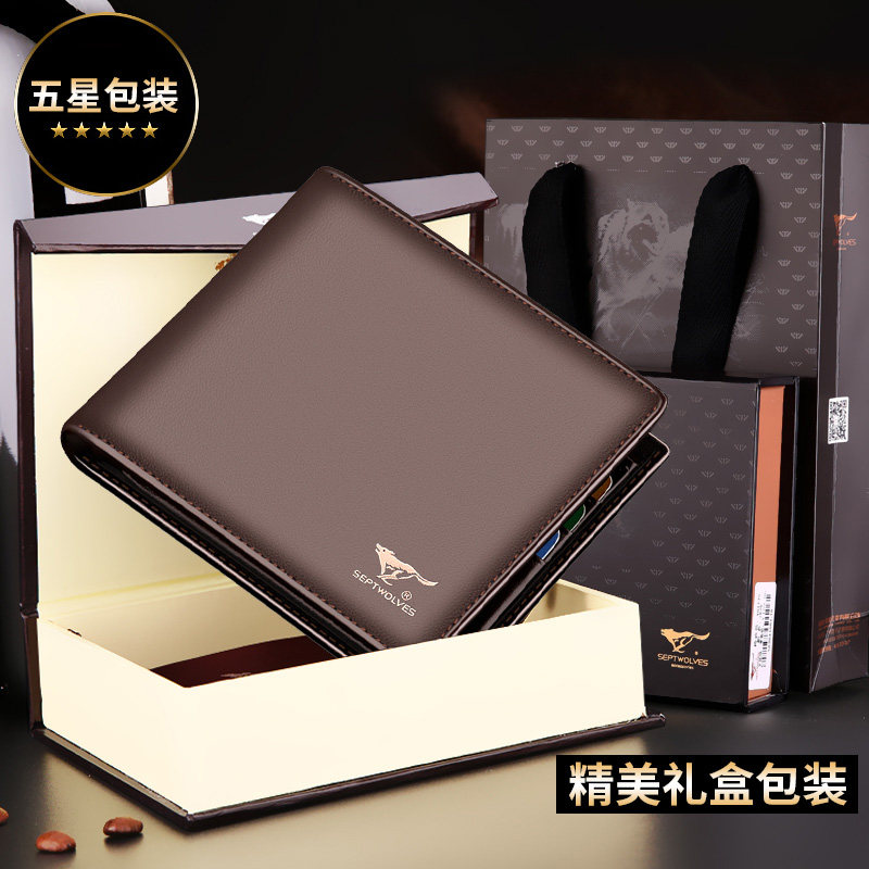 Septwolves Men's Wallet Leather Short Wallet Thin Section 2022 New Explosive Leather Bag Men's Leather Clip Dad