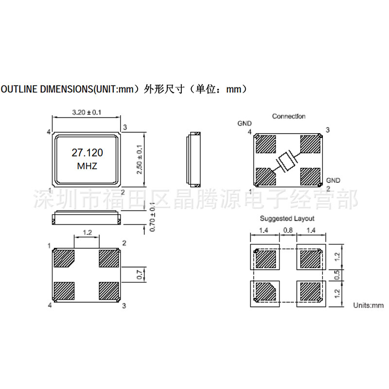Patch crystal oscillator SMD3225 27120MHZ 12PF 10PPM high precision passive crystal Bluetooth special-Taobao