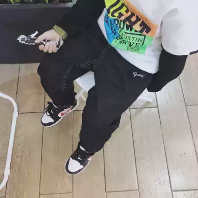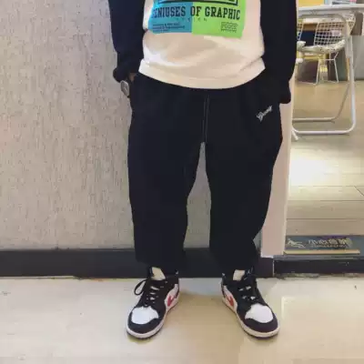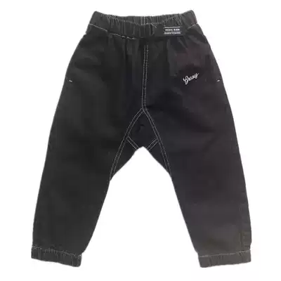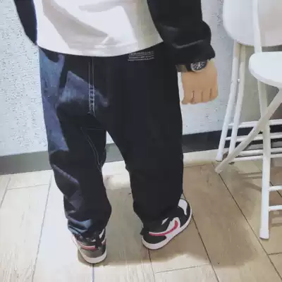 Self-made children's children's Japanese solid color embroidered closing loose big ass jeans boys Tide fan denim trousers