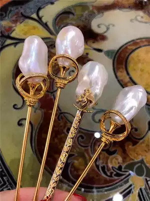 Baroque hairpin sterling silver plated 18K gold Hanfu hairpin