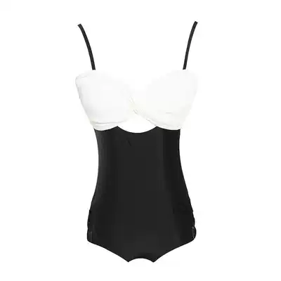 Summer swimsuit women 2021 New Net Red fashion big chest thin belly cover black and white stitching conservative swimsuit