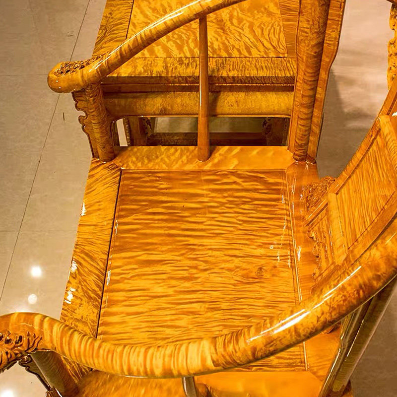 Large Leaf Nana Full Water Polo Palace Chair Three Sets Small Leaves and Dining Palace Chair Three Sets Large Leaf Nanyin Sinyin Wood Imperial Palace Chair Three Sets Gold Camphor Full Tumor Scar Imperial Chair Three Sets