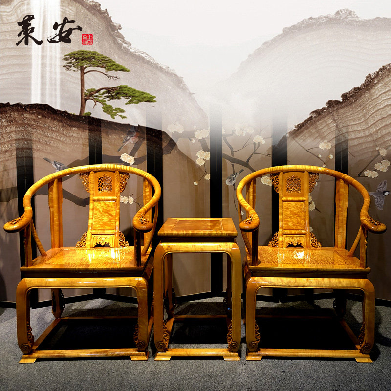 Red Wood Furniture Imperial Palace Chair Three Sets Golden Silk Nana Full Water Wave Casual Circle Chair Taiba Chair Full Wood Mortise And Mortise structure-Taobao