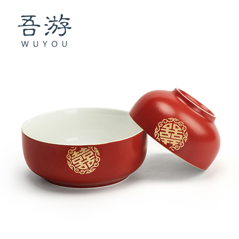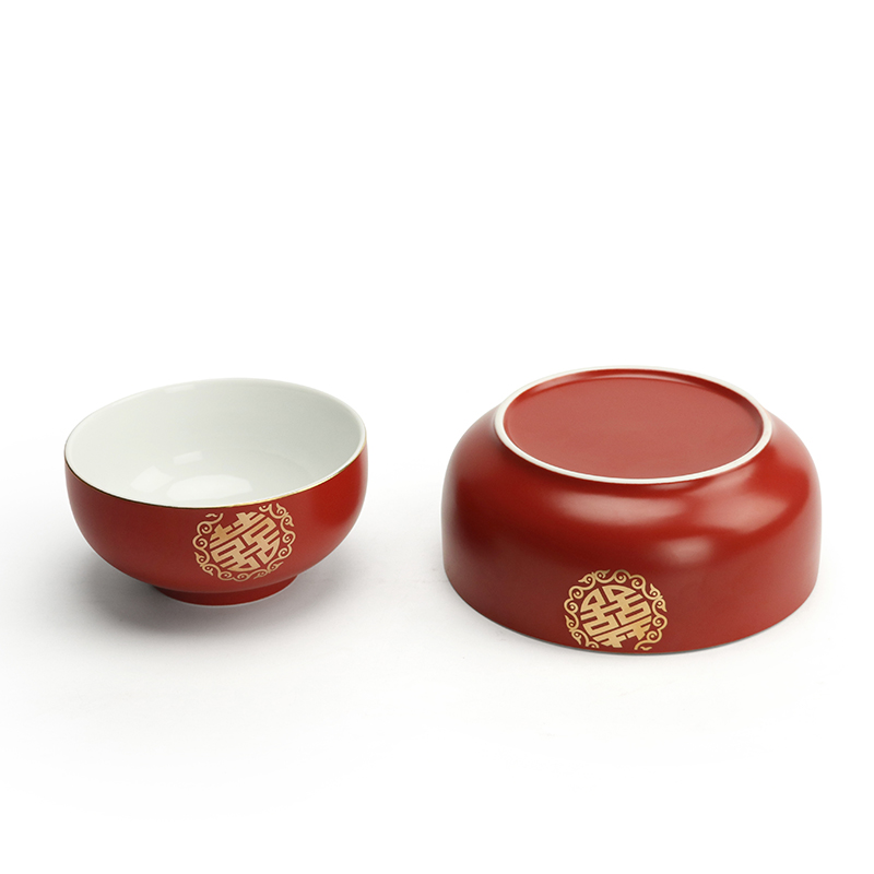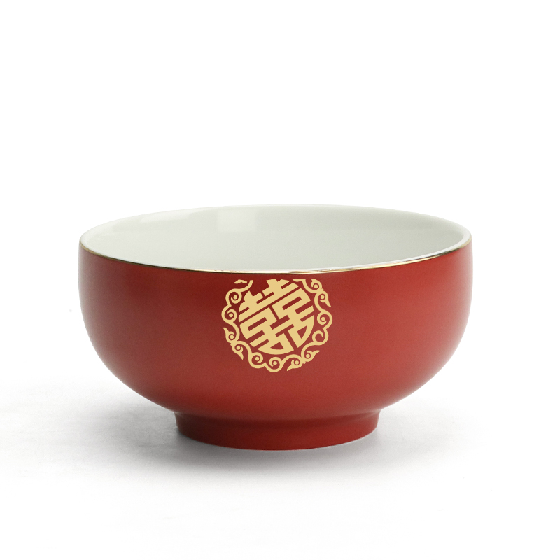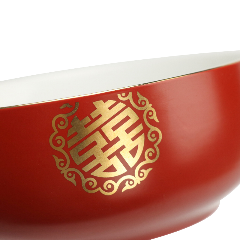 I Tours Festive Noodle Bowl Ceramic Bowl Home Chinese Style Wedding Large Bowl Large Noodle Bowl Wedding bowl Chopsticks Cutlery Red Bowl