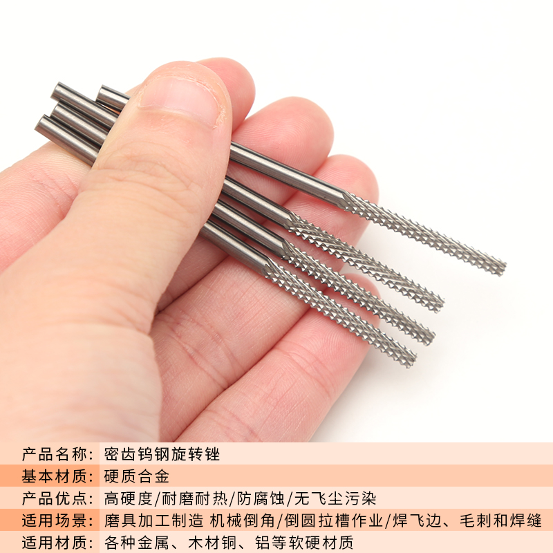 3X3 lengthened tungsten steel rotary file (dense tooth type)