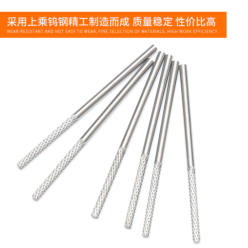 Lengthened tungsten steel import alloy rotary filing rigid dense teeth electric grinding head milling cutter metal electric grinding engraving machine knife