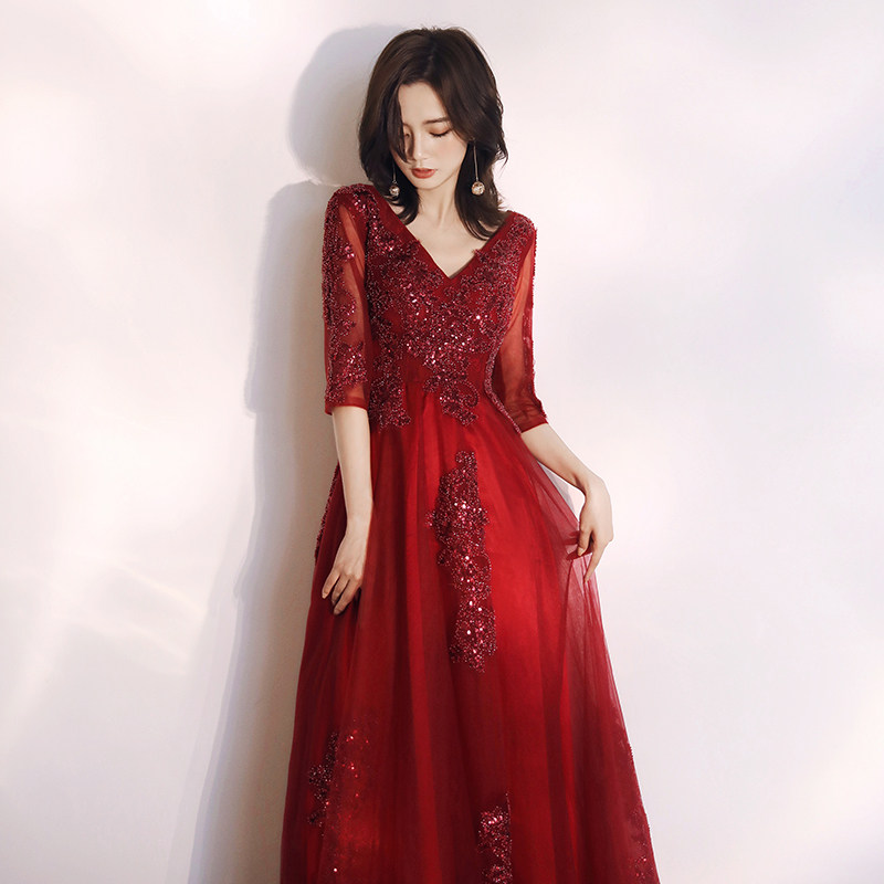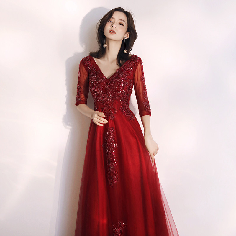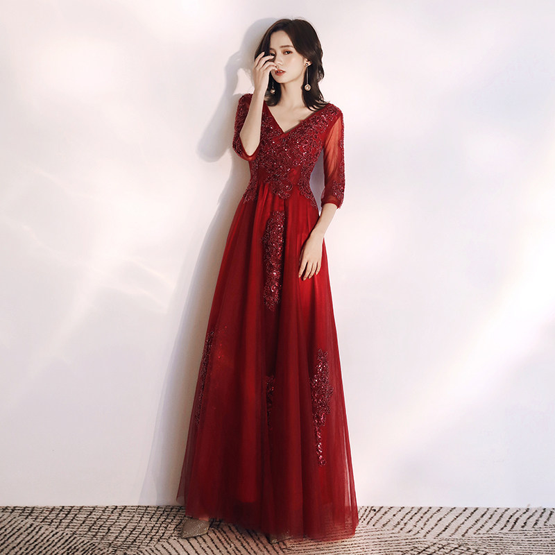 Toast dress bride 2021 new wedding large size back door dress skirt female chorus conductor wine red thin