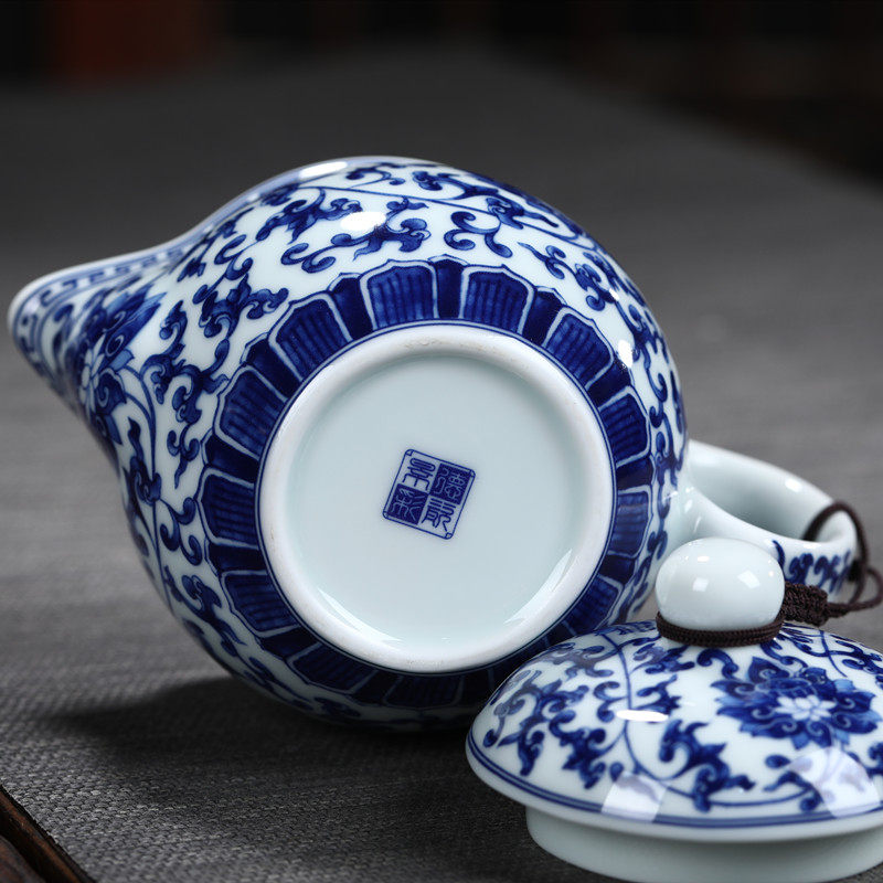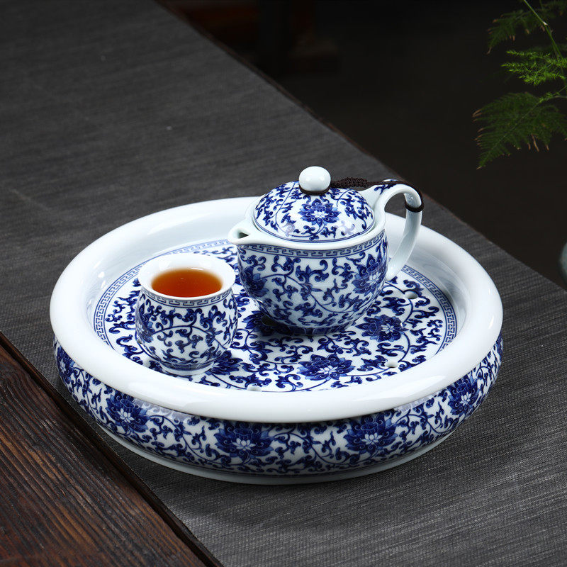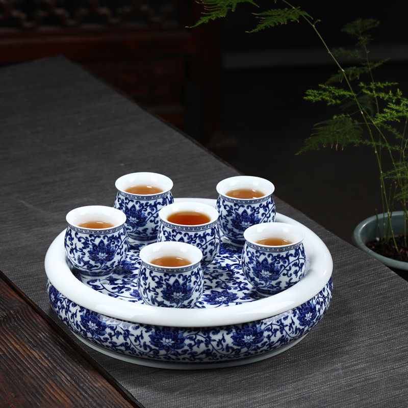 Jingdezhen high-grade blue and white porcelain kung fu tea set set ceramic teapot double-layer teacup with tea tray complete gift box