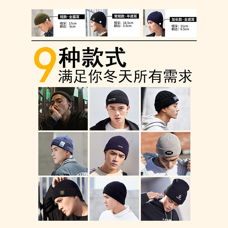 Knitted hat men's autumn winter hat men's boarder fur line hat winter warm cotton hat ground ruffling cap melon leather hat cold hat