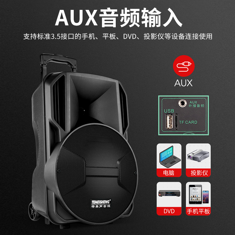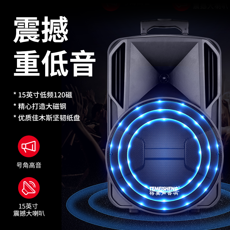 Special sound square dance outdoor sound speaker wireless microphone Bluetooth high volume singing K song portable mobile rod Nature high power heavy subwoofer commercial performance special 15-inch rechargeable