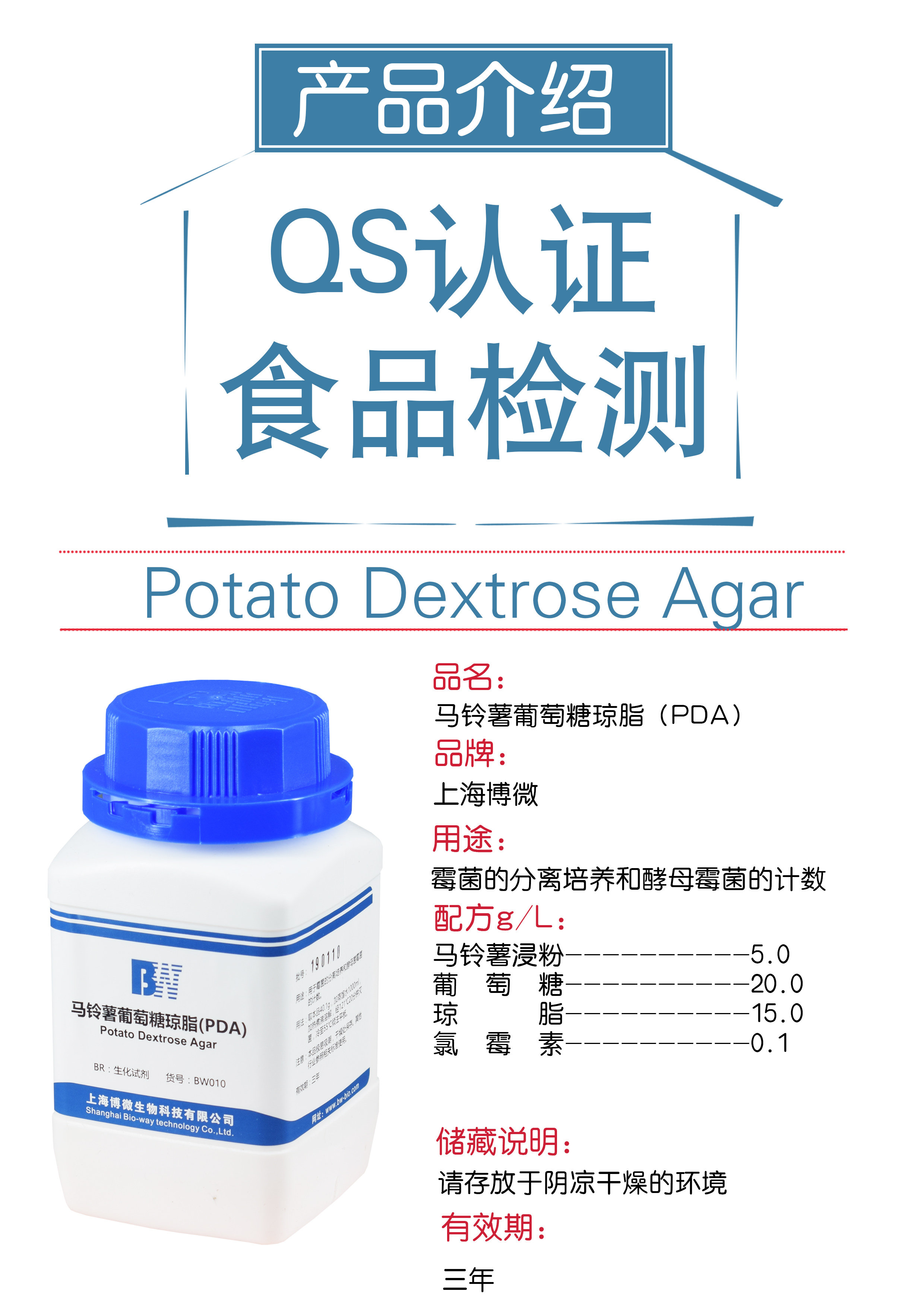 Shanghai Bomicro Potato Glucose Agar Agar PDA Experimental Supplies Chemical Reagent 250g Bottle Culture Medium