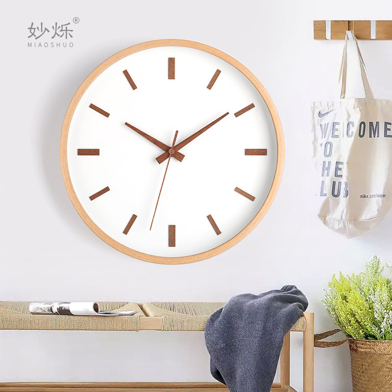 Day-style hang-in-the-wind solid wood Nordic Living room pole minimalist about modern home mute log hanging wall clock table