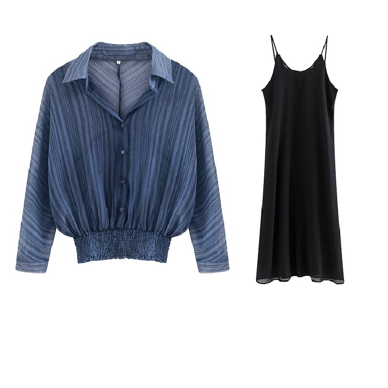 European station 2021 summer new suspender dress suit female retro port taste net red cardigan temperament two-piece set