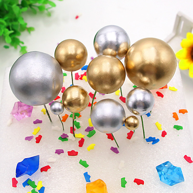 Baking cake decoration metal ball happy birthday card plug-in black gold decorative ball gold ball silver ball card