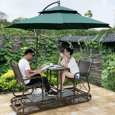 Woven rattan two-person rocking chair Woven rattan two-person rocking chair Banana umbrella Woven rattan two-person rocking chair middle column umbrella