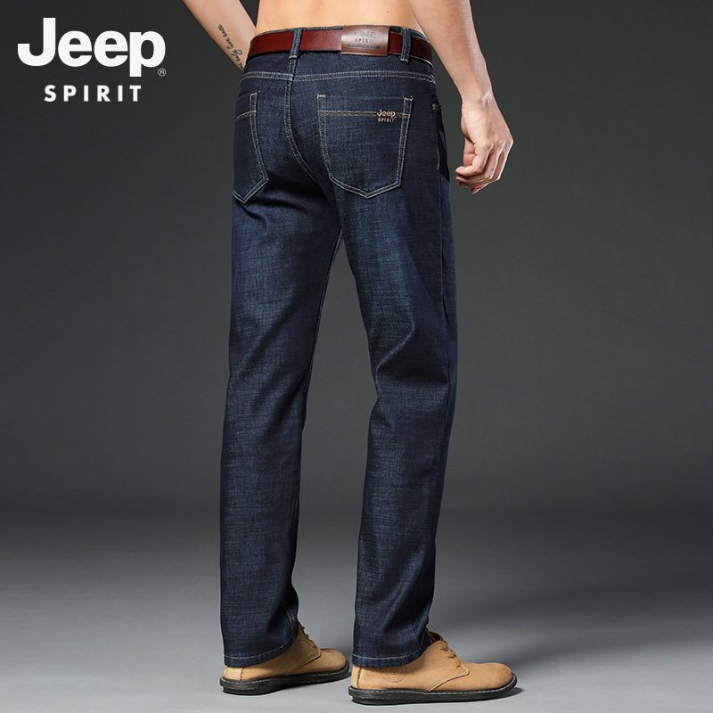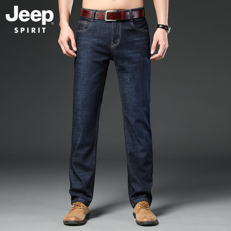 JEEP fleece jeans men's winter thickened loose straight large size middle-aged autumn and winter warm denim trousers