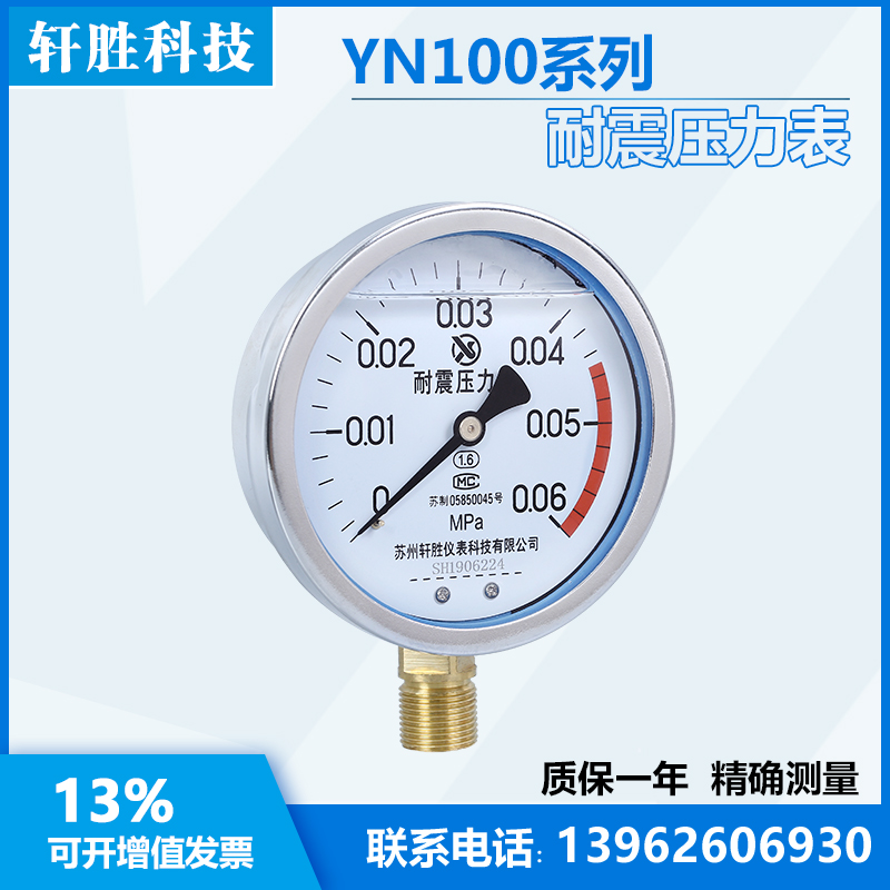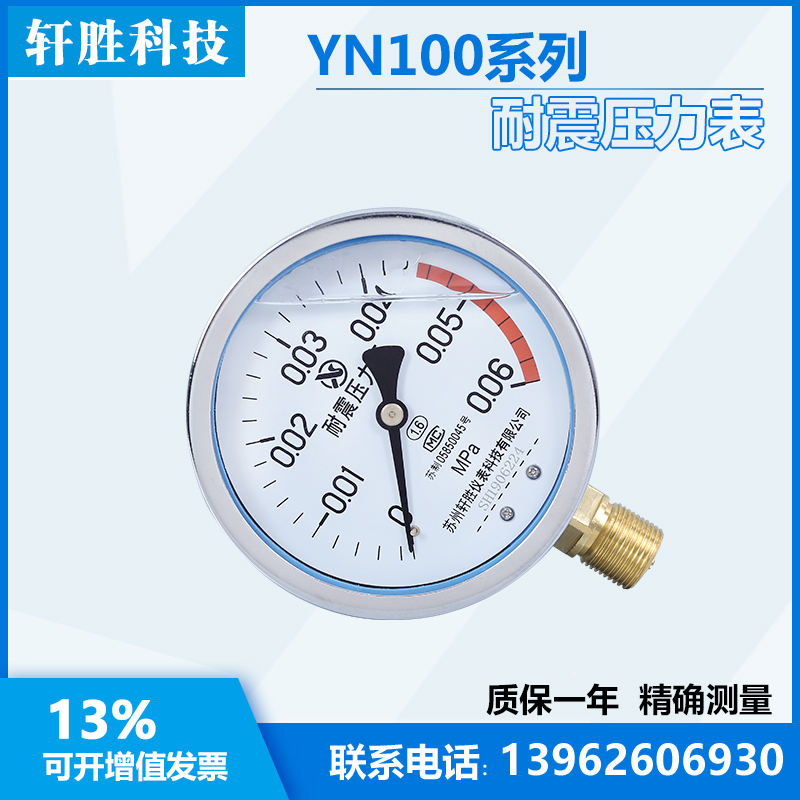YN100 0 06MPa shock-proof pressure meter anti-vibration pressure meter Suzhou Xuan meter